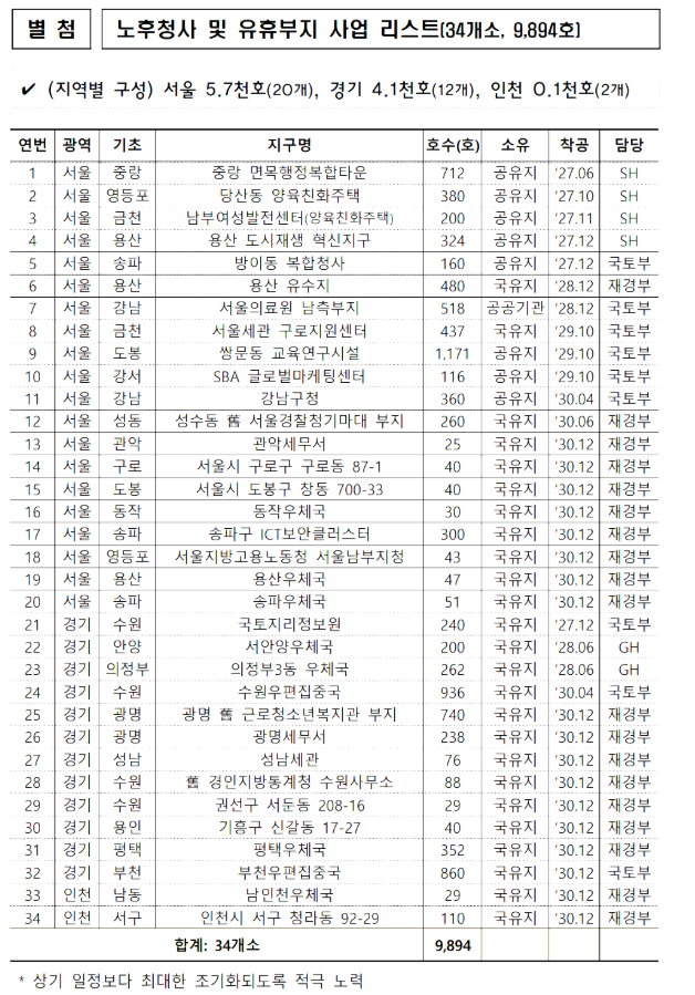 노후청사 외에도 도심 내 대규모 유휴 국·공유지를 활용한 공급이 병행됩니다.