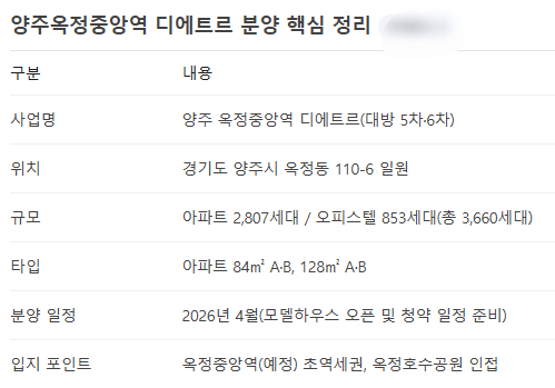 1. 옥정중앙역 디에트르 분양 개요 및 일정