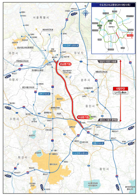 이번 사업은 경기도 용인시 기흥구 동백동(영동고속도로)에서 성남시 수정구 사송동(수도권제1순환고속도로)을 잇는 대규모 프로젝트입니다.