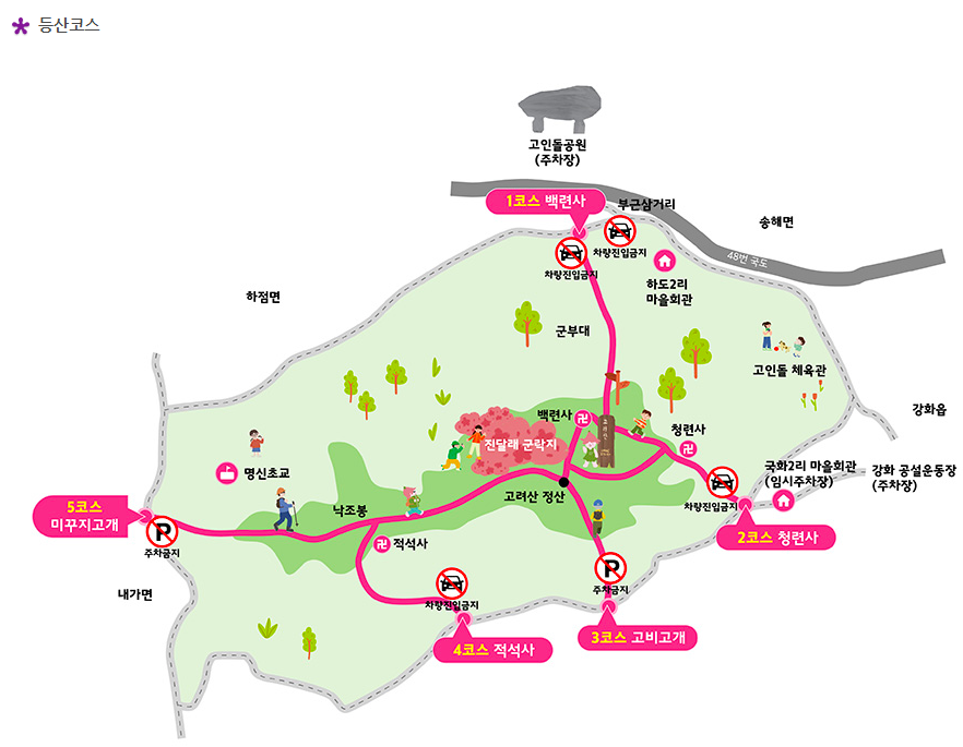 3. 난이도별 고려산 등산 코스 및 소요 시간 상세 안내