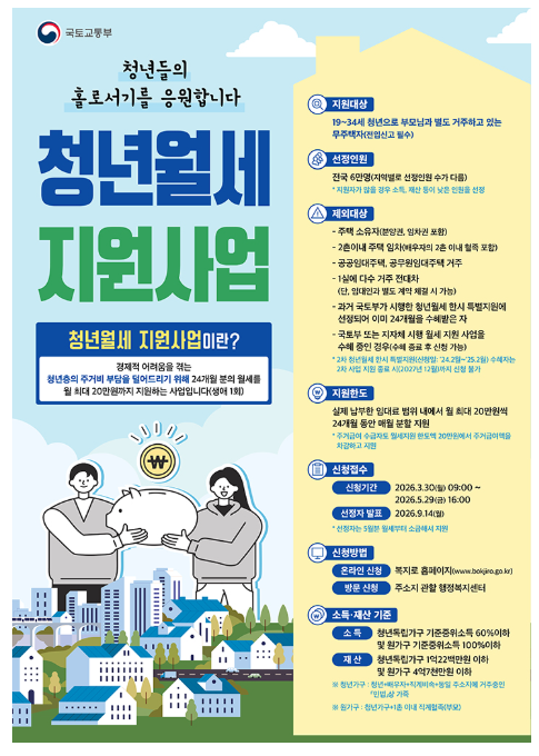 - 최종 선정 발표: 지자체의 소득 및 재산 조사를 거쳐 2026년 9월 중 개별 통보될 예정입니다.