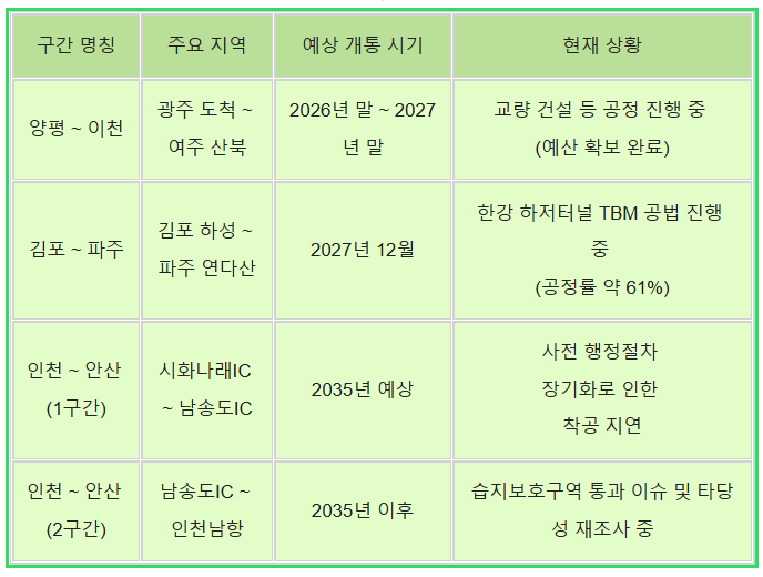 최근 발표된 인천~안산 구간의 2035년 개통 전망은 많은 분께 아쉬움을 남겼지만, 반대로 2027년 말 예정된 김포~파주~이천 구간의 연결은 수도권 동북부와 서북부를 하나로 묶는 거대한 전환점이 될 것입니다.