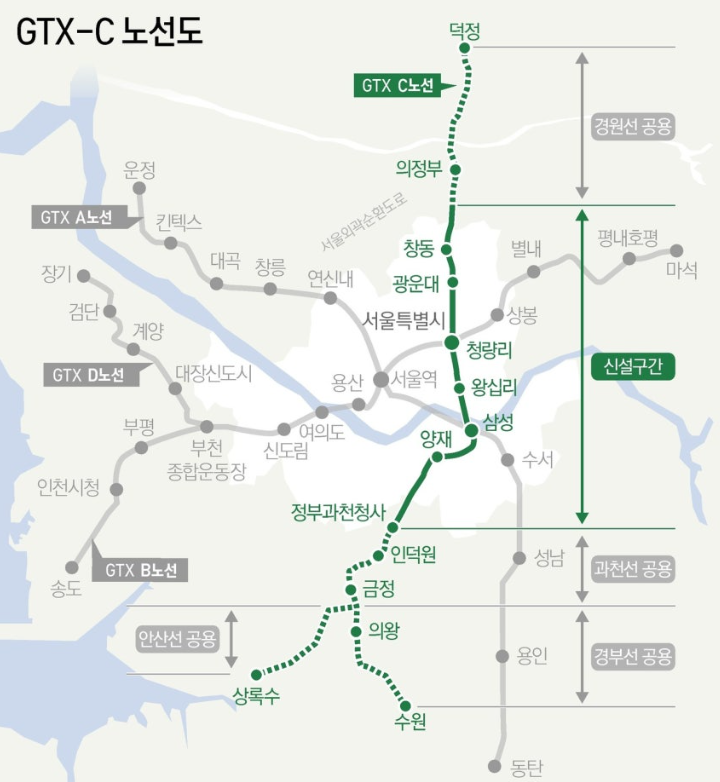 GTX-C는 경기 북부와 남부를 직선으로 잇는 핵심 노선입니다.
