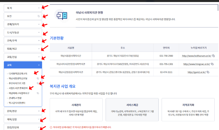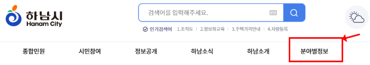 1. 2026 하남시청 홈페이지 분야별 정보 카테고리