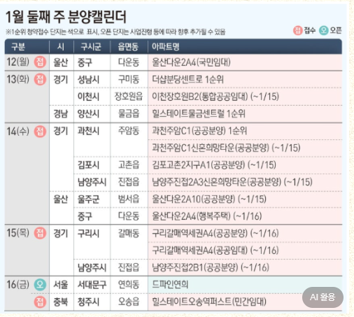 2. 1월 둘째 주 전국 주요 분양 단지 (14개 단지 총정리)